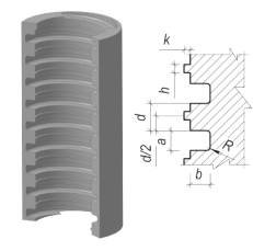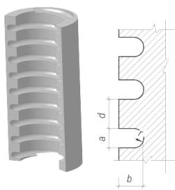 Рис. 2 Корпус вертикального винтового конвейера, с прямоугольным профилем поперченного сечения рифлей, имеющим скругления. |