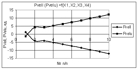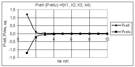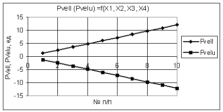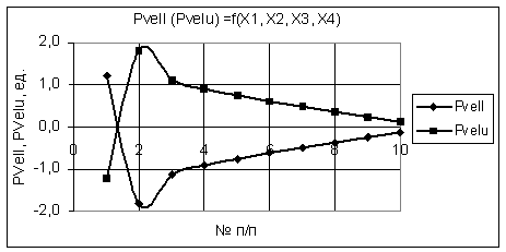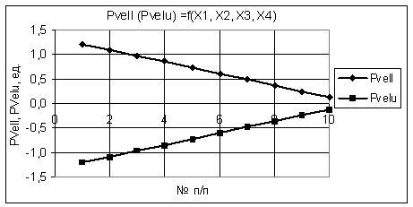 Pvell и Pvelu при Х1 = 1…10, Х2 = Х3 =Х4