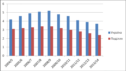 Хмельницькій областях ці показники нижче середнього по Україні і складають