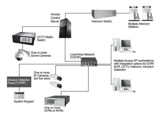 контроля доступа с видеонаблюдением, домофоном, CCTV и системой обнаружения вторжений.