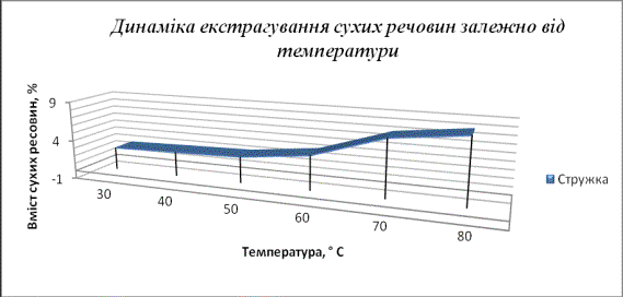 сухих речовин зі стружки в екстракт при температурі екстрагування від 30 до 80