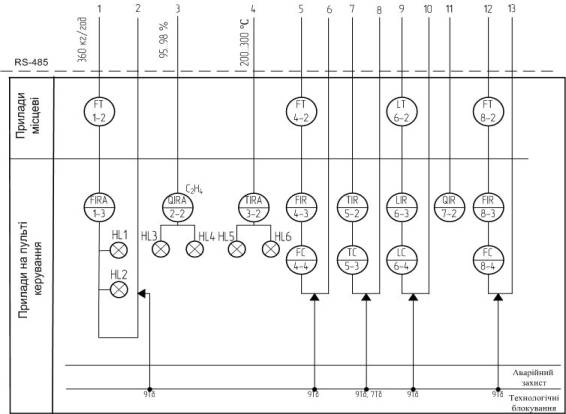 Рис. 1. Схема автоматизації процесу одержання окису етилену