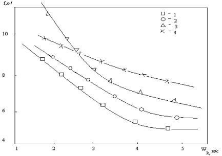 частоты пульсаций газожидкостного слоя более плавно (кривая 4, рис.6), чем на