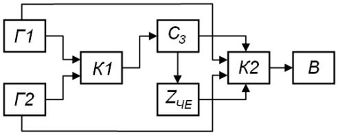 вольтметр В3-48 та два комутаційних елементи К1 і К2.