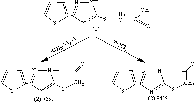 2-(тіофен-2-іл)тіазоло[3,2-b][1,2,4]тріазол-6(5H)-он (2). В іншому випадку,