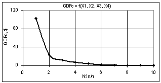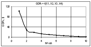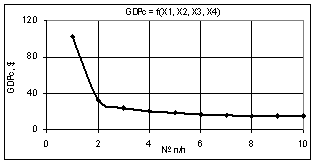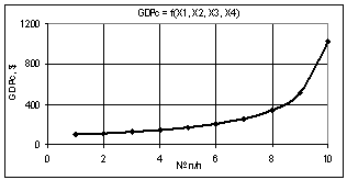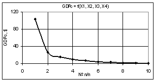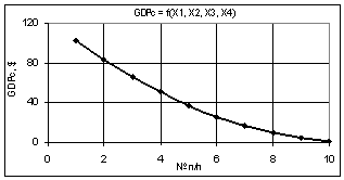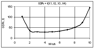 Рис. 4. GDPc = f(Х1, Х2, Х3, Х4) Х1 = 1…0,1, Х2 = Х3 = Х4 = 1 |