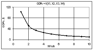 Рис. 1. GDPc =f(Х1, Х2, Х3, Х4) Х1 = Х2 = Х3 = 1, Х4 = 0,1…1 |