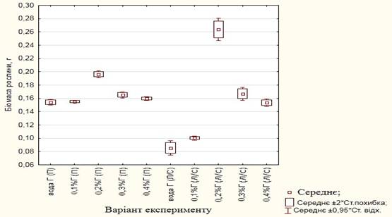 0,0855±0,0114 г – варіант з водою). Збільшення біомаси рослин, можливо, пов’язано