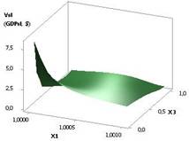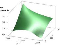 двух рисунках 11 и 12 были построены две трехмерные области GDPsl при Х1 = Х2 = 1…10, Х3 = 1…0,1 и Х1 =