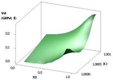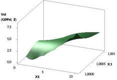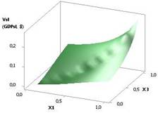 зависимость GDPsl на рис. 9 при Х1 = 1…0,1, Х2 = Х3 = 1 уменьшается практически по линейной