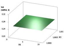 (GDPsl) = f(X1, Х2) при Х1 = Х3 = 1…10, Х2 = 1 |