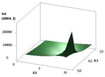 следующего рис. 10 видно, что кривая GDPsl при переменных Х1 = Х2 = 1, Х3 = 1…0,1 увеличивается