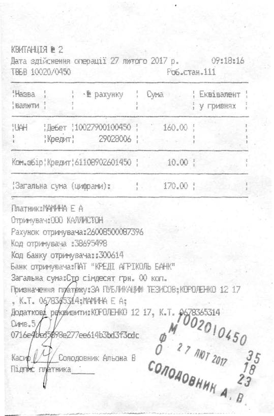 Mamina Î.Î., Kabachny V.I., Tomarovska T.O.