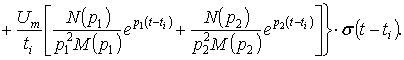 складова матиме аналогічний вираз, але із протилежним знаком і часовим зсувом ti: