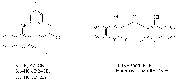 [2] та похідні 4-гідроксикумарину 2, 3, що є антагоністами вітаміну К,