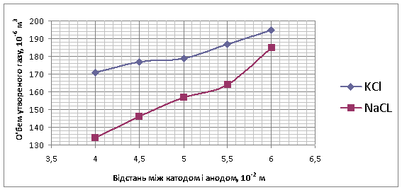 відстані між катодом і анодом на кількість утворення суміші газів під час