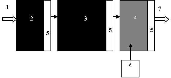 блока (2,3,4) с целью очистки воды и доведения ее состава и свойств до