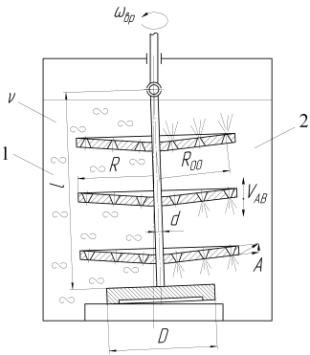 ротор установлены диски, посредством которых производится перемешивание. Эти