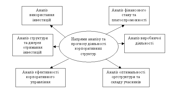 Рис. 1. Напрями аналізу діяльності корпоративних структур