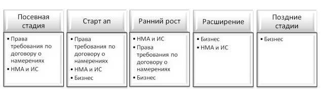 2. Была рассмотрена специфика развития венчурных проектов и для каждой стадии развития проекта были идентифицированы возможные объекты оценки.