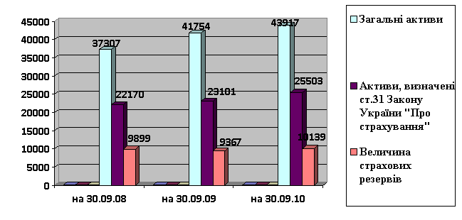 Рис. 1. Динаміка обсягів активів та обсягів страхових