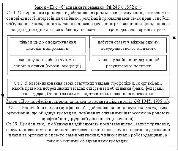 (ст.9). У перелік прав цих об`єднань були включені: участь у формуванні органів