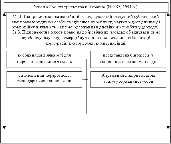 корпорації), консорціуми (тимчасове статутне об'єднання підприємств для