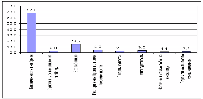 на втором ранговом месте стояли безработные (14,7) и на третьем - расторжение брака во время беременности (4,9%).