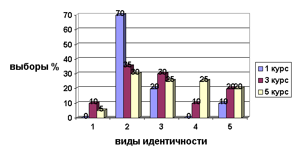 идентичности студентов - психологов изменяются в период обучения с первого по пятый курсы.