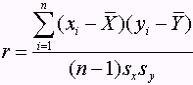 їх середні значення, sx та sy – їх стандартні відхилення; n – кількість