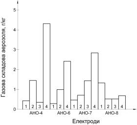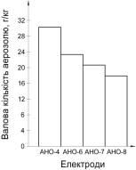характеристик електродів типу АНО показали, що валова кількість аерозолю, що