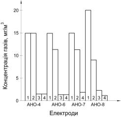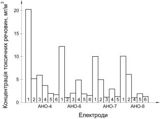 Концентрації токсичних речовин у процесі зварювання електродами з