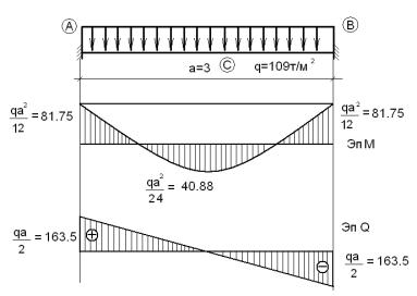сторонам и свободная по длинным сторонам пластины пластина. q = g∙1м = 109т/м2∙1м = 109т/м