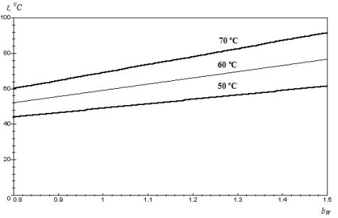 Температура подогреваемой воды при tc1=50; 60; 70 0С и Р=0,3МПа