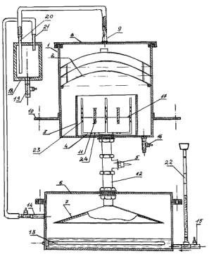 парообразователь 6, конусообразный заборник пара 7, крышку 8, патрубок 9,