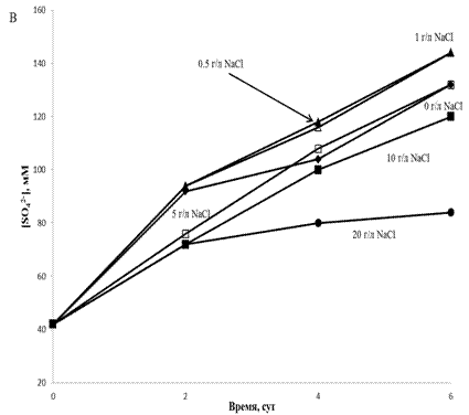 суретте көрсетілген. Екі штаммен де күкірттің тотығуын NaCl