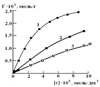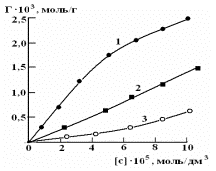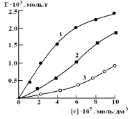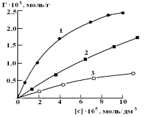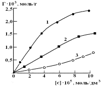 7. Изотермы сорбции ртути (II) из водных растворов сорбентом ОБР-1. 1-278 К, 2-295 К, 3-315 К. |