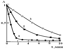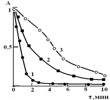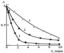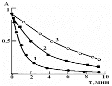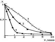 14. Изотермы кинетики сорбции свинца сорбентом ОБР-1. 1-278К, 2-295К, 3-315К. |