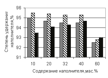 Рис. 2 Влияние содержания наполнителя на степень его удержания в