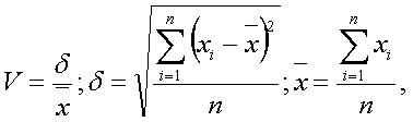 де V - коефіцієнт варіації,