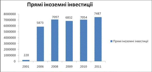 починаючи з 2001 р. намітилось зростання обсягів інвестицій з 220 млн. дол. США до 58723 млн. дол. США, та до 7097 млн.