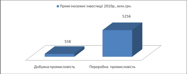 чином, обсяг прямих інвестицій у 2010 р. до переробної промисловості у