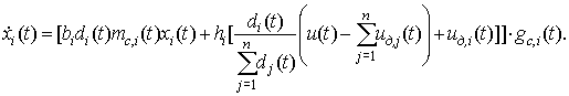 инвестиций u(t) введём в (3) в виде коэффициента di(t) её инвестиционной
