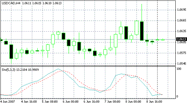 підіймається вище за лінію %D. Продавайте, якщо лінія %K опускається нижче за