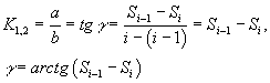 тангенсу кута нахилу кривої лінії до горизонталі.