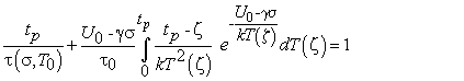 Рассмотрим теперь температурное нагружение, когда напряжение σ остается в процессе испытания постоянным, а меняется только температура. Критерий разрушения в этом случае принимает вид: