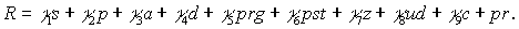 (mag), аспирантуры (aspir), докторантуры (doct) с учетом весовых коэффициентов χ: