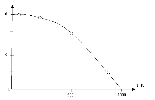 Fig. 1. Temperature dependence of magnetisation I(T) of rock (andesito - basalt)