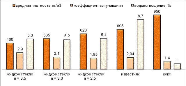 наилучшими показателями обладают композиции, вспененные жидким стеклом (рисунок