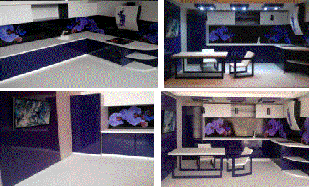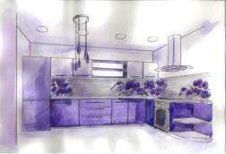 представлен макет интерьера кухни«Фиолетовая орхидея» (см рис3) которое полностью